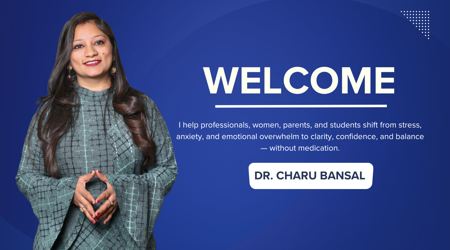 With over 21 years of experience as a Life Coach, Inner Wellness Coach, and Licensed Manifestation Coach, Dr. Charu helps professionals, women, parents, and students move from stress, anxiety, and self-doubt into clarity, confidence, and balance — naturally, without medication. Her coaching blends mindset mastery, manifestation tools, and emotional wellness practices to create lasting transformation and a life aligned with peace and purpose.